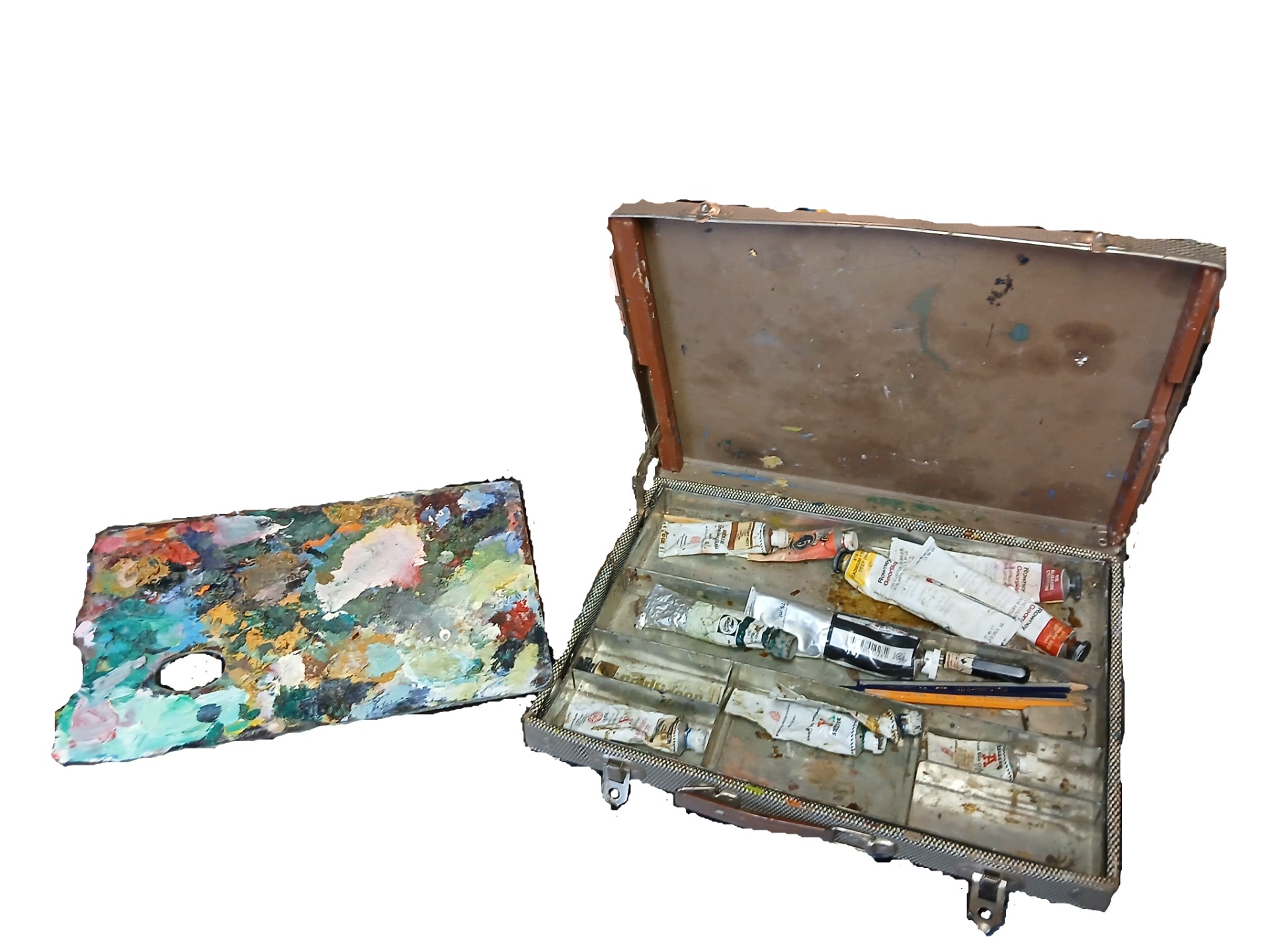 Pappas palett och oljemålarväska.