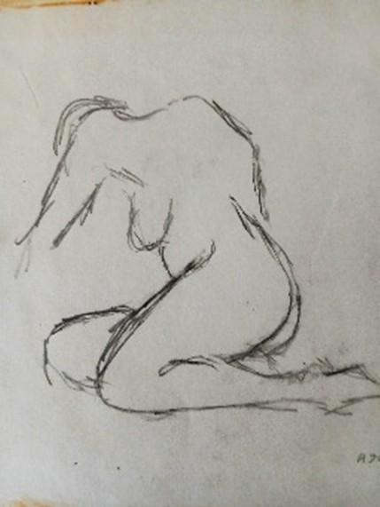 Två blyertsteckningar från tiden på Per Brahegymnasiet.