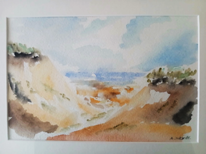 Åren gick och det började kännas att studietiden närmade sig ett slut. Jag försökte utveckla akvarellmålandet. Det bohemiska livet var fantastiskt, men nu börjar en längtan efter stillhet vakna. Flera gånger åkte jag på motorcykeln till Halland. Jag drogs till stränderna och till havet.