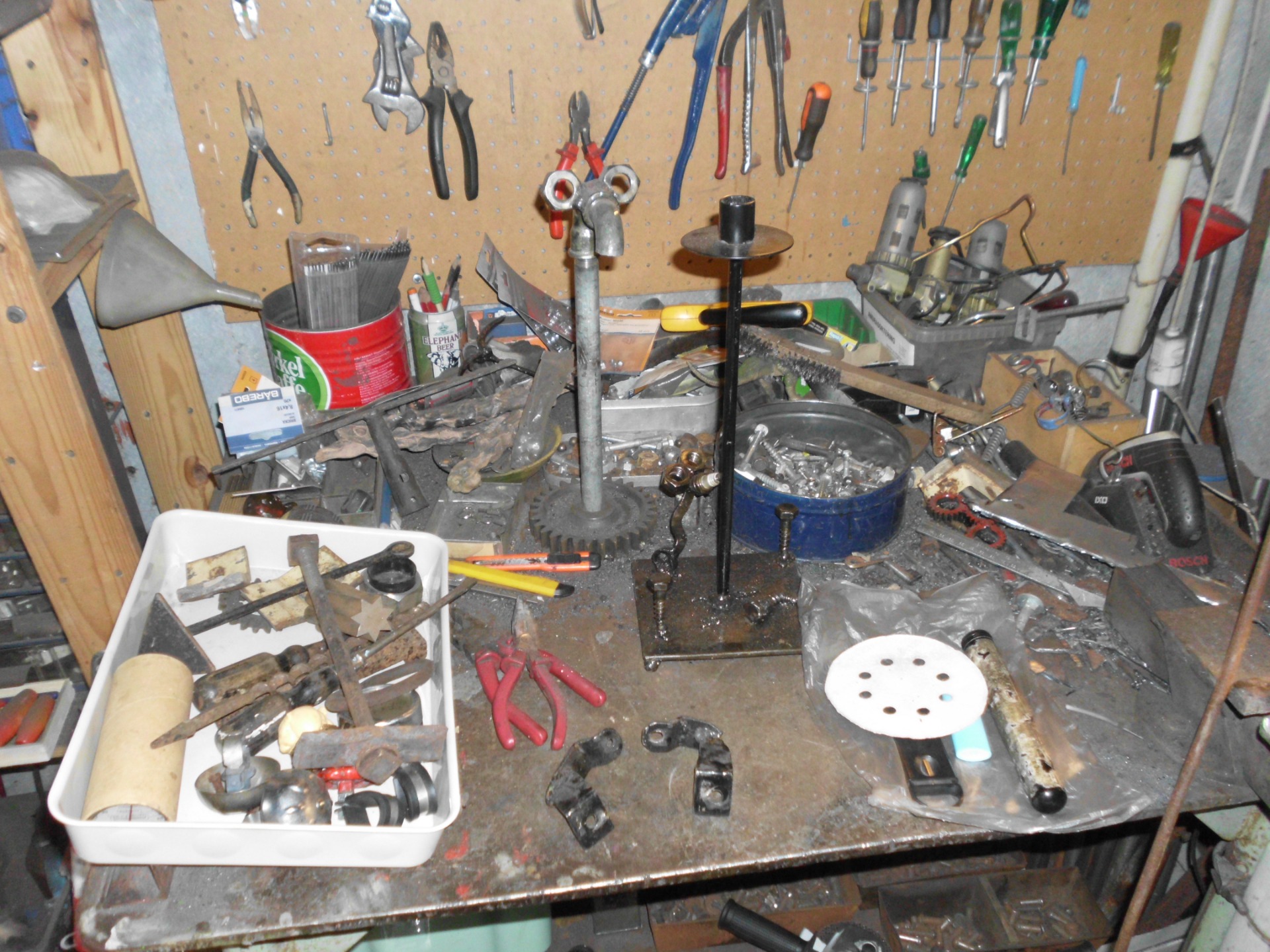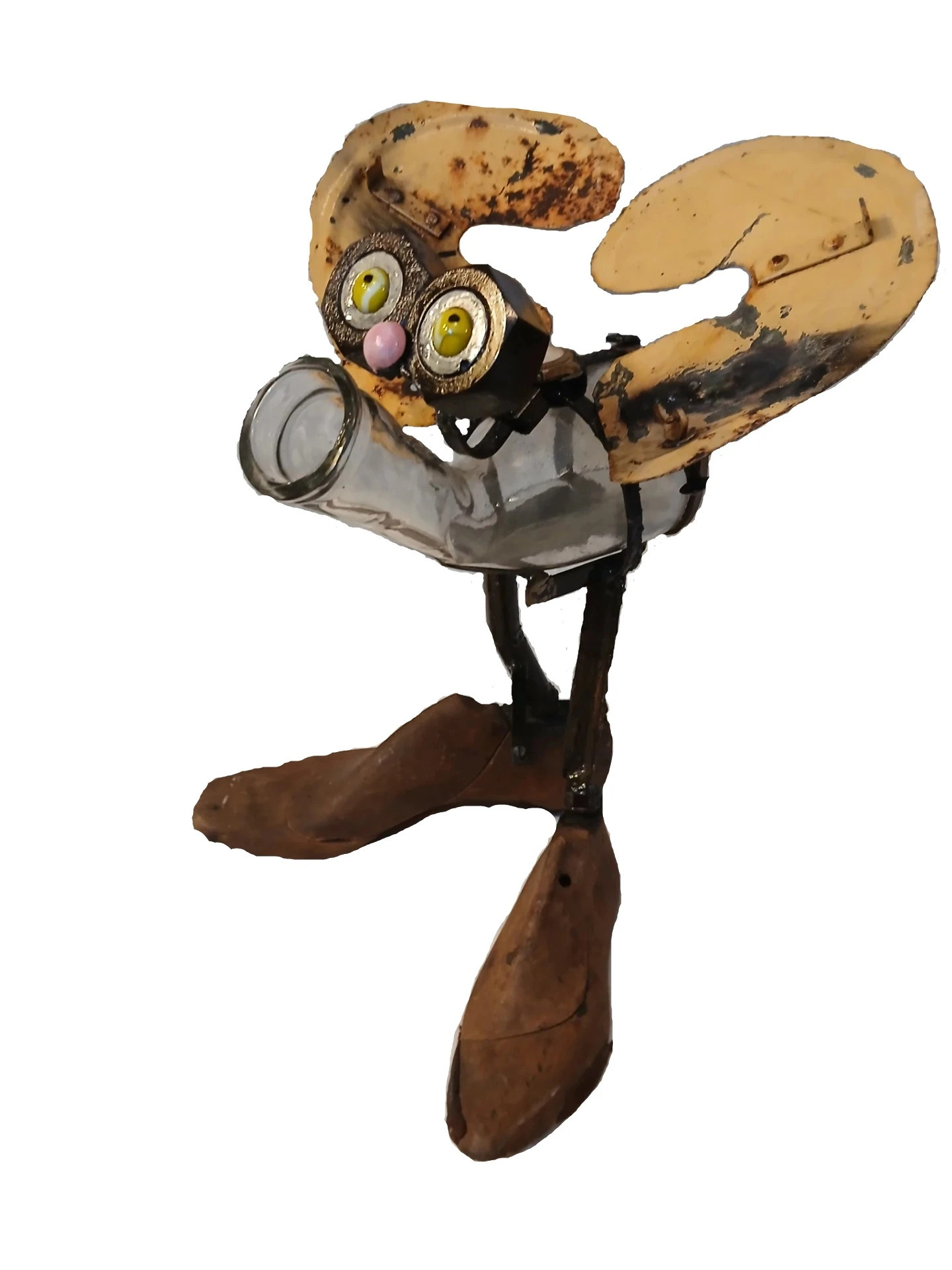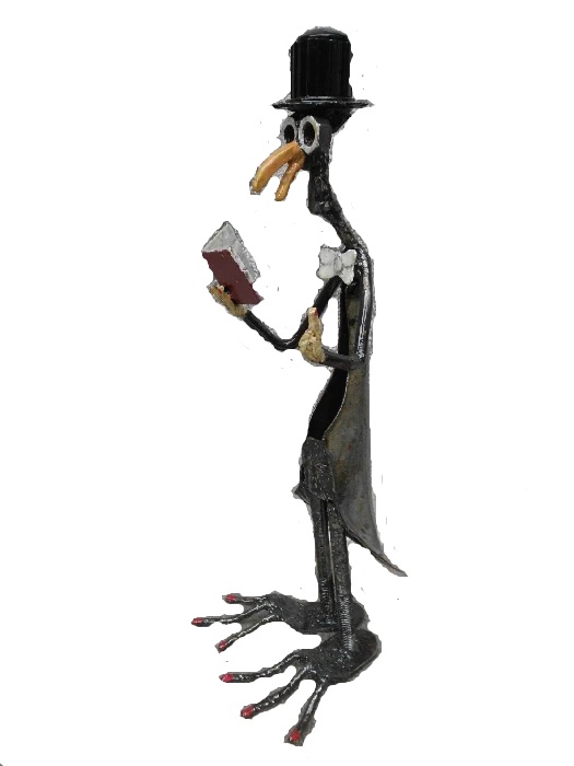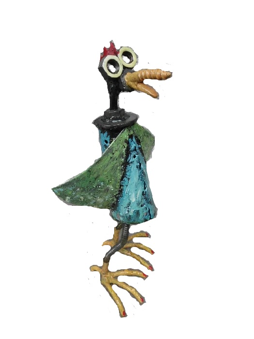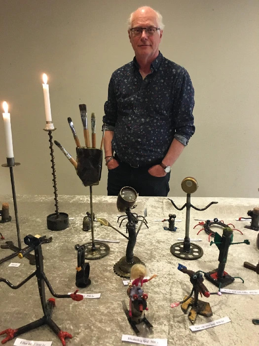 Runt år 2013 började jag intressera mej för att göra skulpturer av rostigt järn och skrot och gamla saker. Min fru är dotter till en känd keramiker och glaskonstnär som hade utställningar på olika platser i landet. Han hette Orvar Lake och kombinerade sin keramik och sitt glasarbete vid Ekenäs glasbruk med att måla tavlor. Så gjorde jag också ett tag, och mitt målande fortsatte några år till. Jag började delta i årliga konstrundor i trakterna där jag bor och ställde ut, och sålde flera målningar. Men jag märkte på min publik att det som verkligen gick hem var mina skrotfigurer. Nu la jag undan penslar och färg. För tillfället.